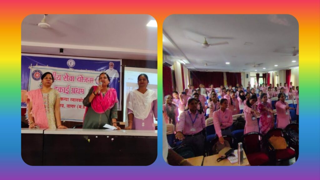 शासकीय स्वशासी कन्या स्नातकोत्तर उत्कृष्टता महाविद्यालय सागर में राष्ट्रीय सेवा योजना प्रभारी डॉ. सरिता जैन के निर्देशन में 2 अक्टूबर गांधी जयंती के उपलक्ष्य में अजीम प्रेमजी फाउंडेशन संस्था के सहयोग से एक कार्यक्रम आयोजित किया गया जिसमें गांधी जी के विचारों से संबंधित पोस्टर, प्रदर्शनी , वीडियो स्क्रीनिंग एवं क्विज शामिल थे। संस्था प्रमुख डॉक्टर आनंद तिवारी ने संबोधित करते हुए कहा कि गांधीजी की आत्मा आज भी हर उस व्यक्ति में जीवित है, जो सत्य, प्रेम और मानवता में विश्वास रखता है। राष्ट्रीय सेवा योजना प्रभारी डॉक्टर सरिता जैन ने गांधी जी के विचारों पर प्रकाश डालते हुए कहा कि उनका जीवन एक ऐसी खुली किताब है, जिसमें हर पन्ना त्याग, सेवा और सच्चाई की मिसाल देता है। मनीषा शर्मा जी ने कहा कि गांधी जी ने जो राह दिखाई है वह आज भी उन सबके लिए प्रकाशस्तंभ है, जो सच्चाई में विश्वास रखते हैं। अजीम प्रेमजी फाउंडेशन से आई तरन्नुम निशा जी ने स्वयंसेवकों के साथ महात्मा गांधी के विचारों पर विस्तार से परिचर्चा की जिसमें उन्होंने छात्राओं से बेहतर समाज के निर्माण में योगदान देने के लिए कहा कि कोई भी बदलाव हो वह व्यक्तिगत स्तर से ही प्रारंभ होता है। इस अवसर पर डॉ बिंदु श्रीवास्तव, डॉ प्रज्ञा पांडे, निधि सोनी एवं बड़ी संख्या में राष्ट्रीय सेवा योजना के स्वयंसेवक उपस्थित रहे।