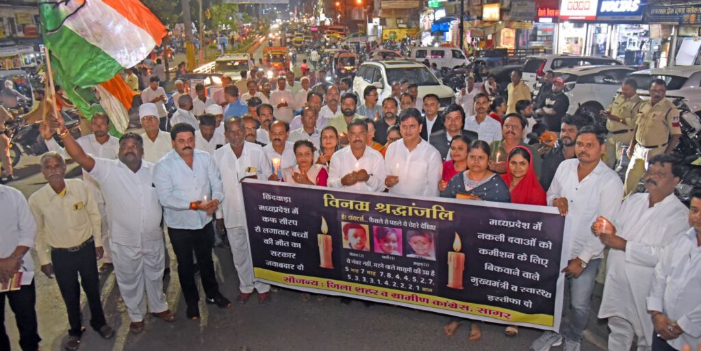 “हत्यारी” सरकार इस्तीफा दे! छिंदवाड़ा के 20 से अधिक मासूमों की मौत पर सागर में कांग्रेस का ‘आक्रोश कैंडल मार्च’