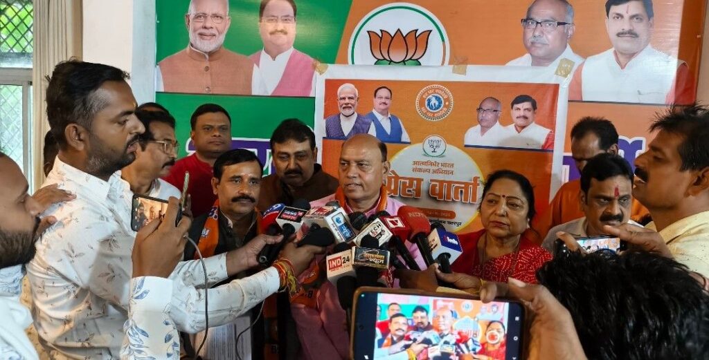 (नरयावली विधायक इंजी. प्रदीप लारिया ने भाजपा कार्यालय छतरपुर में किया पत्रकार वार्ता को संबोधित)