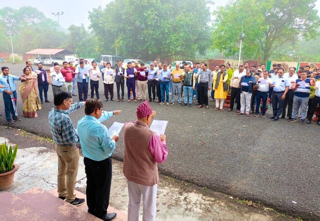 सागर । डॉक्टर हरीसिंह गौर विश्वविद्यालय सागर में केन्द्रीय सतर्कता आयोग, नई दिल्ली के निर्देशों के परिपालन में 27 अक्टूबर 2025 से 02 नवम्बर 2025 तक विश्वविद्यालय में “सतर्कता जागरूकता सप्ताह 2025” आयोजित किया जा रहा है जिसकी थीम ‘सत्यनिष्ठा : हमारी साझा जिम्मेदारी’ है । इसी क्रम में 28 अक्टूबर 2025 को पूर्वान्ह 11:30 बजे, विश्वविद्यालय प्रशासनिक भवन प्रांगण में कुलपति प्रो. वाय. एस. ठाकुर ने विश्वविद्यालय के शिक्षकों, अधिकारियों, कर्मचारियों एवं छात्र-छात्राओं को सत्यनिष्ठा की शपथ दिलाई । इस अवसर पर उन्होंने कहा कि देश की आर्थिक, राजनीतिक तथा सामजिक प्रगति में भ्रष्टाचार एक बड़ी बाधा है । हमारा विश्वास है कि भ्रष्टाचार का उन्मूलन करने के लिए सभी सम्बंधित पक्षों जैसे सरकार, नागरिकों तथा निजी क्षेत्र को एक साथ मिलकर कार्य करने की आवश्यकता है । इस अवसर पर कुलपति ने शिक्षा विभाग द्वारा आयोजित किये जा रहे साप्ताहिक कार्यक्रम के पोस्टर का भी विमोचन किया । इस साप्ताहिक कार्यक्रम के तहत निबंध लेखन, पोस्टर निर्माण, नुक्कड़ नाटक एवं जागरूकता रैली जैसे कार्यक्रम आयोजित किये जाएंगे । शपथ ग्रहण के अवसर पर प्रो. रणवीर सिंह, प्रो. नागेश दुबे, प्रो. दिवाकर सिंह राजपूत, प्रो. अनिल जैन, प्रो. एम. एल. खान, प्रो. राजेन्द्र यादव, प्रो. आर. टी. बेद्रे, प्रो. केशव टेकाम, डॉ मोहन टी ए उपकुलसचिव सतीश कुमार सहित कई शिक्षक, अधिकारी, कर्मचारी एवं छात्र उपस्थित रहे ।