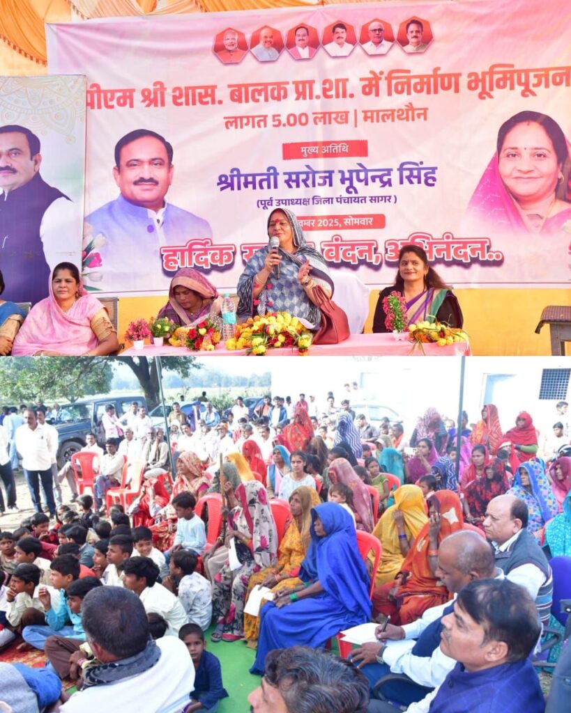 इस अवसर पर जिला पंचायत की पूर्व उपाध्यक्ष  सरोज भूपेंद्र सिंह ने कहा कि आपके पूर्व गृहमंत्री व खुरई विधायक भूपेंद्र सिंह के नेतृत्व में मालथौन क्षेत्र में विकास की गंगा बह रही है। उन्होंने बताया कि क्षेत्र में आंगनबाड़ी केंद्र, हायर सेकेंडरी स्कूल, आयुष भवन, सड़क निर्माण, सामुदायिक भवन, सीसी रोड, सामुदायिक शौचालय जैसे अनेक निर्माण कार्य पूरे किए गए हैं। इसके अतिरिक्त, ग्रामीवासियों की मांग पर और भी विकास कार्य कराए जाएंगे।