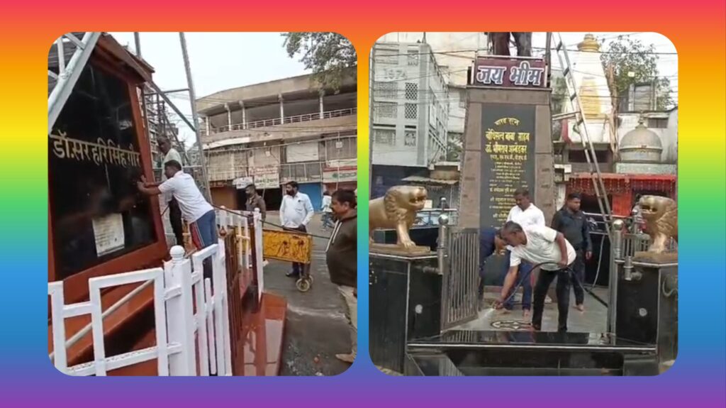 डॉक्टर सर हरि सिंह गौर व डॉक्टर भीमराव अंबेडकर जी की प्रतिमाओं की साफ सफाई जिला कांग्रेस कमेटी के अध्यक्ष महेश जाटव की अगुवाई में की गई व दोनों महा मूर्तियों पर माल्यार्पण कर श्रद्धा सुमन अर्पित किए गए