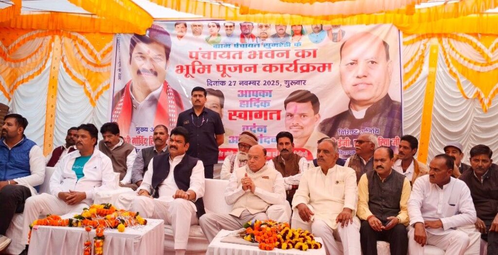 गुरुवार को खाद्य नागरिक एवं उपभोक्ता मंत्री श्री गोविंद सिंह राजपूत के मुख्य आतिथ्य में एवं नरयावली विधायक इंजी.प्रदीप लारिया के विशिष्ट आतिथ्य में समारोहपूर्वक राहतगढ़ विकासखंड के ग्राम सुमरेडी में क्षेत्रवासियों की उपस्थिति में 37.49 लाख रु.की लागत से निर्मित होने जा रहे पंचायत भवन का भूमिपूजन, सुमरेड़ी में शंकर जी चबूतरा निर्माण का भूमिपूजन 50 हजार, गमिरिया में सीसी मार्ग लोकार्पण 5 लाख एवं 1 लाख रू.से हनुमान मंदिर चबूतरा में टाइल्स निर्माण का लोकार्पण का वैदिक मंत्रों की अनुगुंजन के मध्य विधि-विधान से पूजा अर्चना कर भूमिपूजन किया।