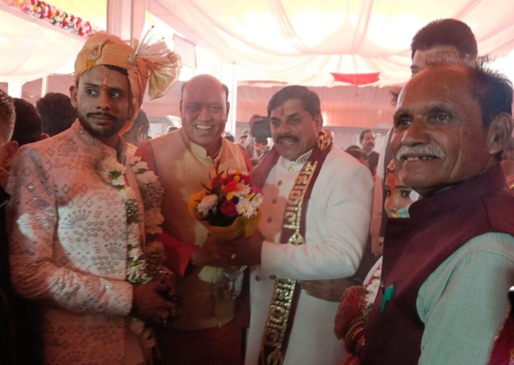 मुख्यमंत्री डॉ.मोहन यादव के साथ नरयावली विधायक इंजी.प्रदीप लारिया ने विवाहोत्सव में सम्मिलित होकर नवयुगलों को सफल दाम्पत्य जीवन की मंगल कामनाएं व्यक्त की।