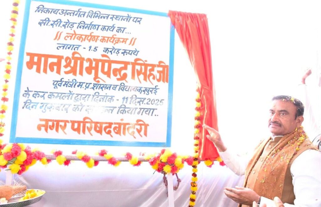 बांदरी। विकास का फायदा तभी है जब सभी का जीवन संस्कारित, अनुशासित हो। आप धर्म पर चलें और क्षेत्र के विकास की जिम्मेदारी मुझ पर छोड़ें। यह उद्गार पूर्व गृहमंत्री खुरई विधायक भूपेन्द्र सिंह ने यहां के बमनोरा,इमलिया,सेमरअटा तथा बांदरी वार्डों में 1.5 करोड़ की लागत से निर्मित सीसी रोड कार्यों के लोकार्पण कार्यक्रम को संबोधित करते हुए व्यक्त किए। बांदरी नगर परिषद की समीक्षा बैठक में उपस्थित जनप्रतिनिधियों व अधिकारियों को संबोधित करते हुए पूर्व गृहमंत्री, खुरई विधायक श्री भूपेन्द्र सिंह ने निर्देश दिए कि शहरी आवासहीन एक भी व्यक्ति का नाम पट्टे के सर्वे कार्य में न छूटे।