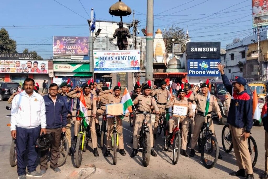 सागर | भारतीय थल सेना दिवस के उपलक्ष्य में 33 मध्यप्रदेश एनसीसी बटालियन सागर के तत्वाधान में शासकीय संभागीय आईटीआई सागर के एनसीसी कैडेट्स द्वारा एक विशाल साइकिल रैली का आयोजन किया गया। देशभक्ति के नारों और उत्साह के साथ कैडेट्स ने शहरवासियों को सेना के गौरवशाली इतिहास का संदेश दिया।