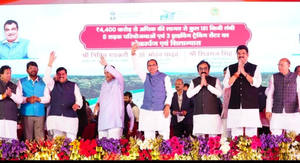 केंद्र और राज्य सरकार के विकासोन्मुखी मॉडल को समर्पित करते हुए शनिवार, 17.01.2026 मध्यप्रदेश में सड़क परिवहन के बुनियादी ढांचे के विकास में एक महत्वपूर्ण मील का पत्थर साबित हुआ, जब केंद्रीय सड़क परिवहन और राजमार्ग मंत्री श्री नितिन गडकरी ने ओल्ड मंडी ग्राउंड, विदिशा में कुल 4,400 करोड़ से अधिक लागत की 8 राष्ट्रीय राजमार्ग परियोजनाओं एवं 3 ड्राइविंग ट्रेनिंग सेंटर का लोकार्पण और शिलान्यास किया। इस ऐतिहासिक अवसर पर प्रदेश के मुख्यमंत्री डॉ. मोहन यादव और केंद्रीय कृषि मंत्री श्री शिवराज सिंह चौहान भी उपस्थित थे।