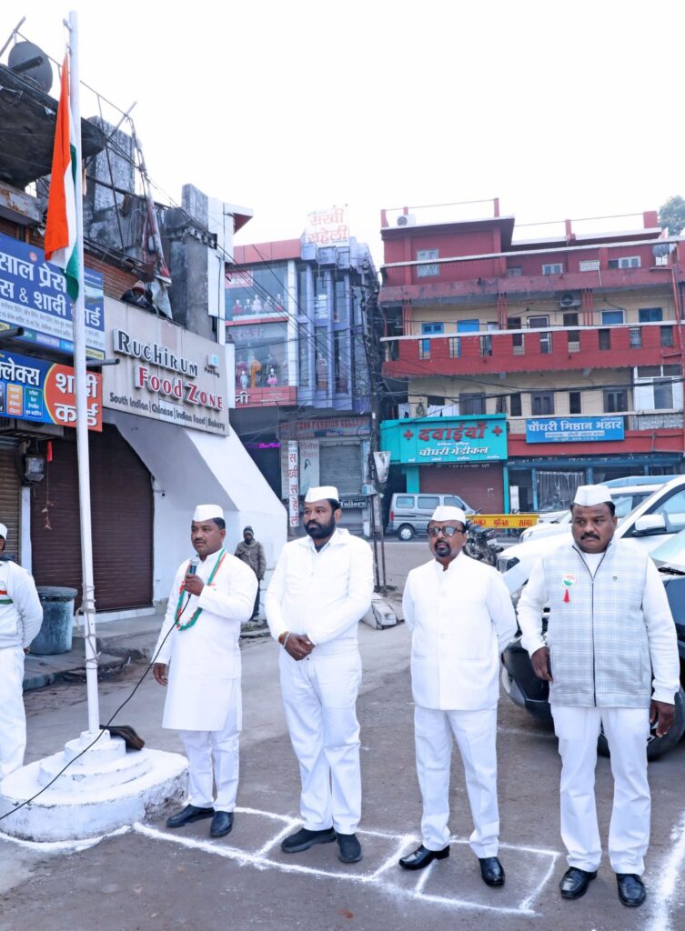 शहर कांग्रेसअध्यक्ष ने कांग्रेस कार्यालय के पास किया ध्वजारोहण