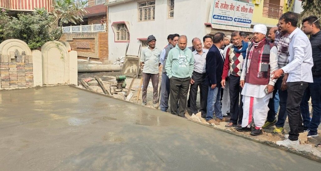 तिली वार्ड के बालक कॉम्प्लेक्स में बन रही सड़क का विधायक शैलेंद्र कुमार जैन ने किया निरीक्षण