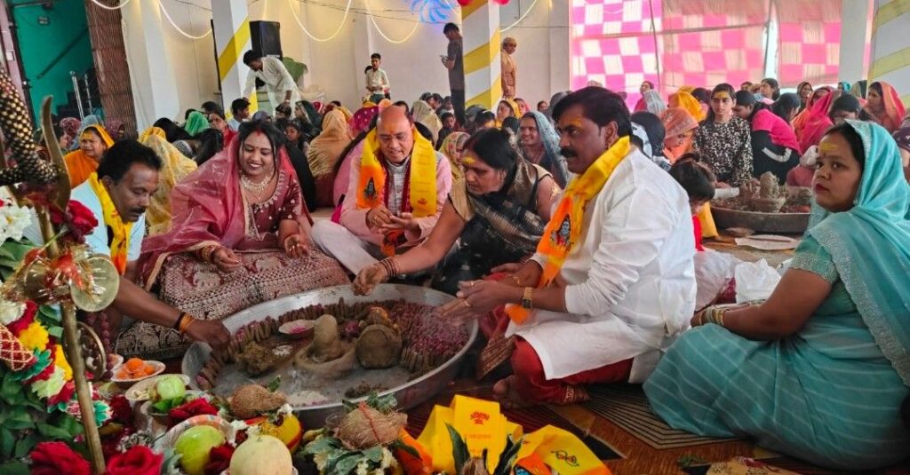 सागर/15.02.2026: महाशिवरात्रि के पावन पर्व पर नरयावली विधानसभा क्षेत्र पूरी तरह शिवमय नजर आया, जहाँ क्षेत्रीय विधायक इंजीनियर प्रदीप लारिया ने विभिन्न आयोजनों में सम्मिलित होकर धर्म और सेवा का संदेश दिया। विधायक लारिया के प्रवास की शुरुआत मकरोनिया स्थित गणेश एंजोरा से हुई, जहाँ ग्वाल (यादव) समाज सकल पंच सागर द्वारा आयोजित 11 कन्याओं के आदर्श सामूहिक विवाह सम्मेलन में उन्होंने शिरकत की। यहाँ उन्होंने नव-विवाहित जोड़ों को आशीर्वाद प्रदान करते हुए आयोजन समिति को इस पुनीत कार्य के लिए बधाई दी और समाज में फिजूलखर्ची रोकने हेतु सामूहिक विवाह को आज की महती आवश्यकता बताया।
