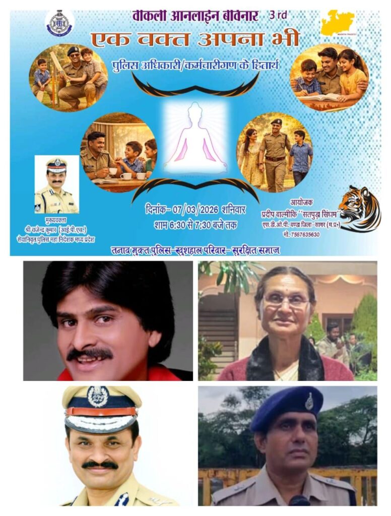सागर। पुलिस सेवा अत्यंत चुनौतीपूर्ण एवं दायित्वपूर्ण कार्य है, जिसमें दिन-रात कर्तव्य निर्वहन के कारण पुलिस कर्मियों पर मानसिक एवं शारीरिक दबाव बना रहता है। इसी तथ्य को ध्यान में रखते हुए एसडीओपी बंडा  प्रदीप वाल्मीकि द्वारा पुलिस कर्मियों के मानसिक स्वास्थ्य एवं तनाव प्रबंधन के लिए एक सराहनीय और अभिनव पहल की गई है। इस पहल के अंतर्गत “एक वक्त अपना भी” नाम से विशेष साप्ताहिक कार्यक्रम प्रारंभ किया गया है।
