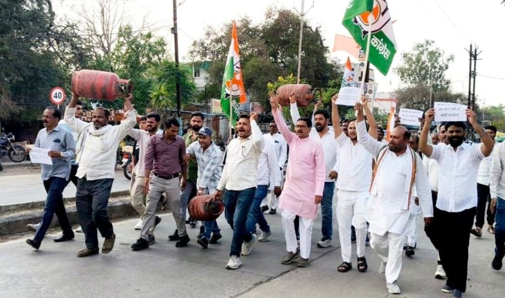 भाजपा सरकार में पेट्रोल,डीजल एवं रसोई गैस और बिजली की लगातार बढ़ती कीमतों,अनियमित आपूर्ति और उत्पन्न हो रही किल्लत के विरोध में मध्य प्रदेश कांग्रेस कमेटी के प्रदेश व्यापी आव्हान पर ब्लॉक कांग्रेस कमेटी सदर कैन्ट व युवा कांग्रेस नरयावली विधानसभा के संयुक्त तत्वाधान में कांग्रेसियों ने स्थानीय सदर कबूला पुल स्थित शनि देव मंदिर के समीप मध्य प्रदेश शासन के पूर्व मंत्री सुरेंद्र चौधरी की अगवाई में हाथों में खाली सिलेंडर और तिरंगे झंडे लेकर जमकर प्रदर्शन कर आमजनों की समस्याओं को प्रमुखता से उठाते हुए भाजपा सरकार की जन विरोधी नीतियों पर सवाल खड़े वाल किए तथा आमजनों को शीघ्र राहत प्रदान करने की पुरजोर मांग करते हुये प्रदर्शन स्थल पर मौजूद प्रशासनिक अधिकारियों को महामहिम राष्ट्रपति महोदया के नाम संबोधित ज्ञापन सौंपा।प्रदर्शन का नेतृत्व कर रहे मध्य प्रदेश शासन के पूर्व मंत्री सुरेन्द्र चौधरी ने मोदी सरकार पर जमकर निशाना साधते हुए कहा अंतरराष्ट्रीय स्तर पर अपनी उपलब्धियों और विदेश नीतियों का बखान करनें वाली भाजपा सरकार में आमजन परेशान हैं और देश व प्रदेश की आम जनता पेट्रोलियम पदार्थों की किल्लत और लगातार बढ़ती कीमतों से आर्थिक बोझ के तले दबने को मजबूर है जिससे भाजपा सरकार की कथनी और करनी में उजागर हुईं हैं,जिसे कांग्रेस पार्टी किसी भी सूरत में बर्दाश्त नहीं करेगी।ब्लॉक कांग्रेस अध्यक्ष रवि उमाहिया ने कहा कि भाजपा सरकार ईंधन प्रबंधन और कालाबाजारी रोकने में नाकाम साबित हुईं परिणाम स्वरूप आम जनों को अनेकों कठिनाइयों का सामना करना पड़ रहा है।युवा कांग्रेस नरयावली विधानसभा के अध्यक्ष रोहित वर्मा ने कहा कि ऑटो चालकों को भी गैस नहीं मिलने के कारण घंटों लाइन में लगे रहनें से उन्हें नुकसान हो रहा है जिससे उनकी आर्थिक स्थिति बिगड़ रही है।प्रदर्शन में युवा कांग्रेस जिला अध्यक्ष संदीप चौधरी, युवा कांग्रेस प्रदेश सचिव निखिल चौकसे ,युवा कांग्रेस ब्लॉक अध्यक्ष समीर मकरानी, राहुल कुशवाहा,साहित्य पाण्डेय आदि ने संबोधित कर पेट्रोलियम पदार्थों की कीमतों में वृद्धि और बढ़ती महंगाई के खिलाफ जमकर हमला बोला।प्रदर्शन में मुख्य रूप से वरिष्ठ कांग्रेस नेता राकेश राय,आर आर पाराशर,गुरमीत सिंह इल्ले, पूर्व सरपंच पुरुषोत्तम शिल्पी,कुंदन जाट, राशिद खान,कोमल सिंह, धर्मेंद्र तोमर,राजा बुन्देला,अबरार सौदागर,पार्षद मोहन अहिरवार,कदम सिंह,आई एम खान,भाग चंद्र कुशवाहा,पवन यादव,शिवा राठौर,सत्यम सिंह चौधरी, दिलीप रावत सूरज, राम बहादुर कुर्मी,देशराज यादव,नियाज अहमद,गंगाराम केमिया,गुलाब अहिरवार, शैलेन्द्र अहिरवार,यूनुस खान,पंचम लाल, अजय अहिरवार राजा अहिरवार,जसवंत अहिरवार, सुखराम अहिर