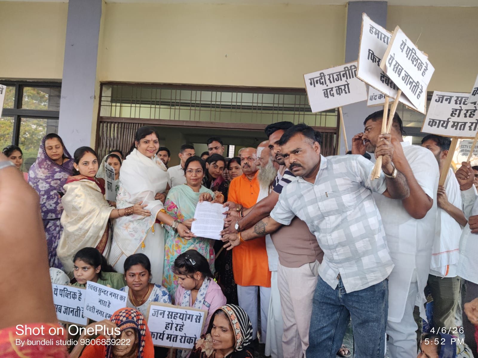 विगत 04 अप्रैल को भाजपा मंडल अध्यक्ष एवं पार्षद भारतेन्दु राजपूत की शिकायत पर प्रशासन द्वारा की गई इस कार्रवाई को लेकर नागरिकों में असंतोष व्याप्त है। जिसके चलते सोमवार सायं 5 नगरपालिका पर एक हुए सैकड़ों नागरिकों ने हाथ में तख्तिया लेकर मौन जूलूस निकाला एवं 2 किलोमीटर पैदल चलकर तहसील कार्यालय पहुँचकर तहसीलदार प्रीतिरानी चौरसिया को ज्ञाापन सौपा।
