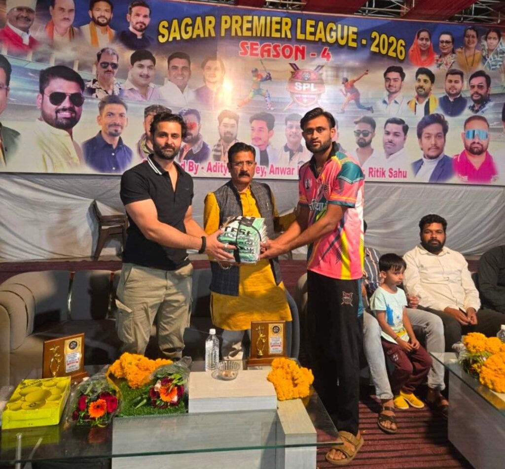 सागर। सिटी स्टेडियम में आयोजित सागर प्रीमियर लीग (SPL) सीजन-4 के उद्घाटन मुकाबले के दौरान भाजपा प्रदेश मीडिया पैनलिस्ट रिशांक तिवारी ने स्टेडियम में पहुंचकर खिलाड़ियों और आयोजकों का उत्साहवर्धन किया।