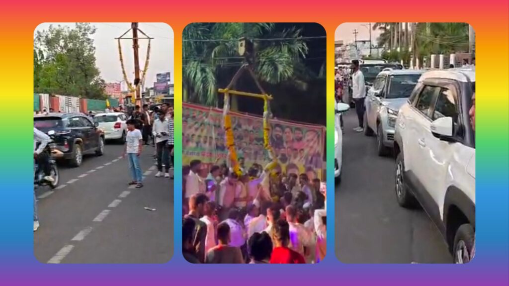 बीच सड़क क्रेन लगाकर स्वागत, 4 घंटे जाम में फंसा शहर