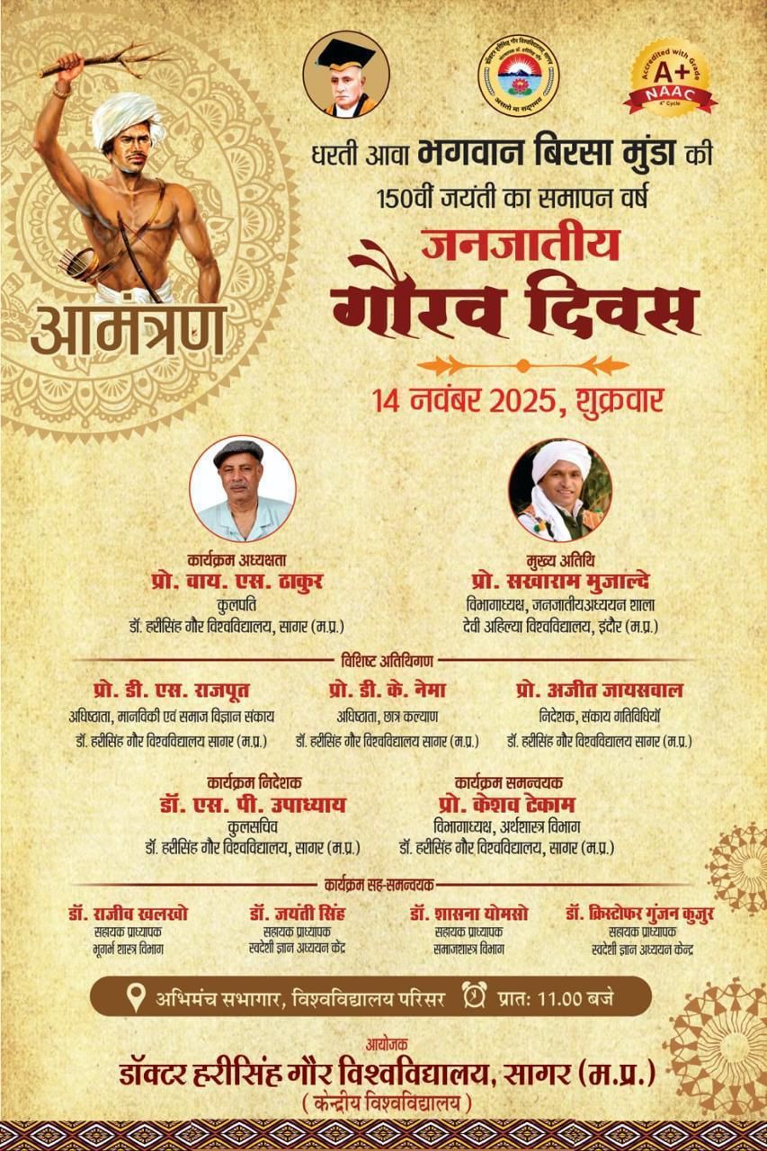 विश्वविद्यालय : जनजातीय गौरव दिवस के उपलक्ष्य में आयोजन 14 को