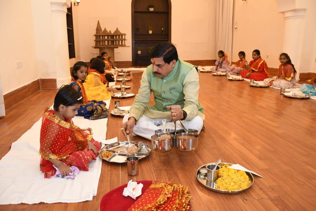 मुख्यमंत्री ने कन्याओं को तिलक लगाकर, चुन्नी ओढ़ाकर स्नेह पूर्वक कराया भोज