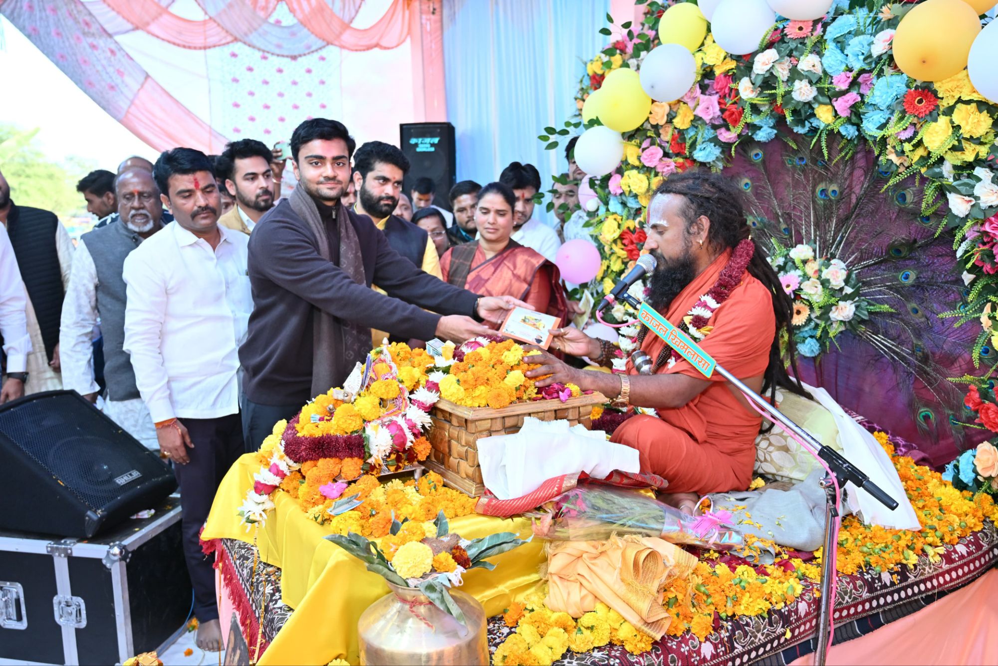 जैसीनगर में आयोजित श्रीमद् भागवत कथा में उमड़े श्रद्धालु कथा में शामिल हुए युवा नेता आकाश सिंह राजपूत