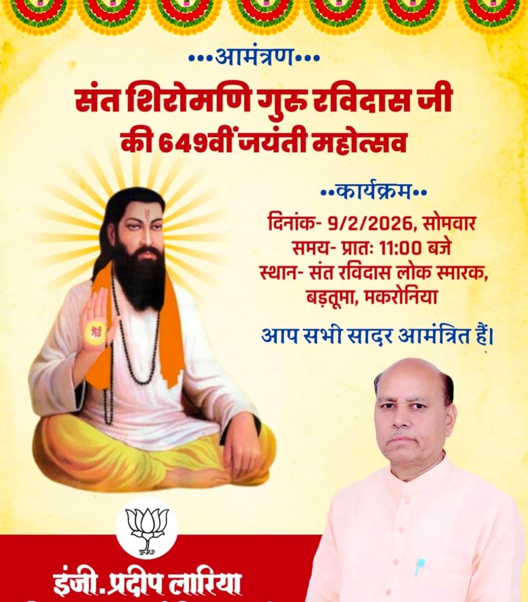संत रविदास जयंती महोत्सव: नरयावली विधायक इंजी.प्रदीप लारिया ने दिया भव्य आयोजन का निमंत्रण