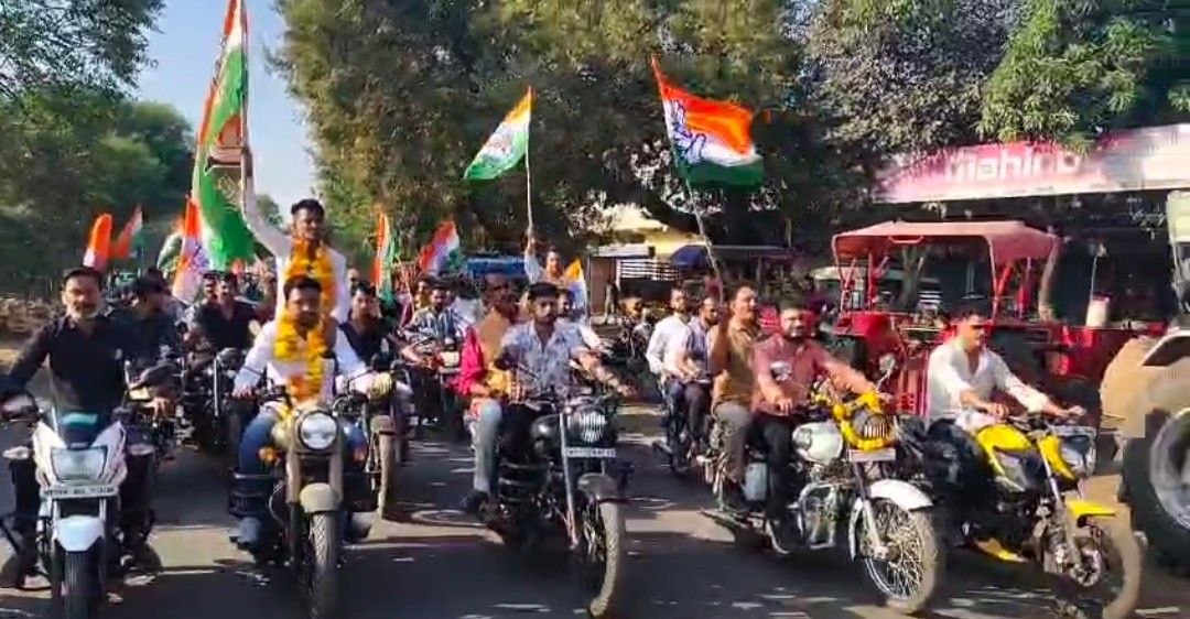 युवक कांग्रेस चुनाव मै विजय हुए पदाधिकारियो के साथ युबक कांग्रेस साथियो ने निकाली विशाल मोटर साईकिल रैली