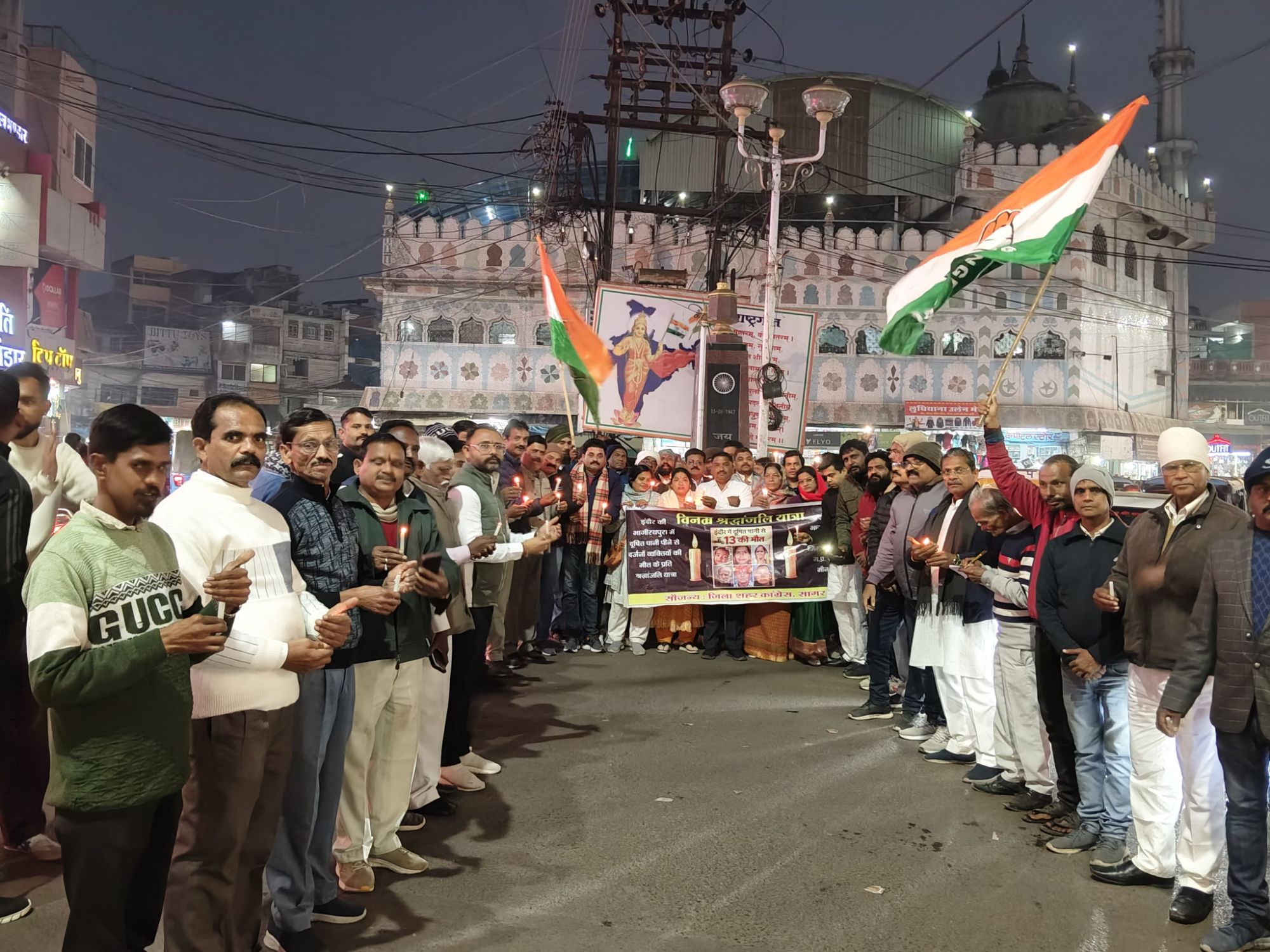 दूषित पानी को लेकर हुई मौतों के विरोध में शहर कांग्रेस ने निकाला कैंडल मार्च